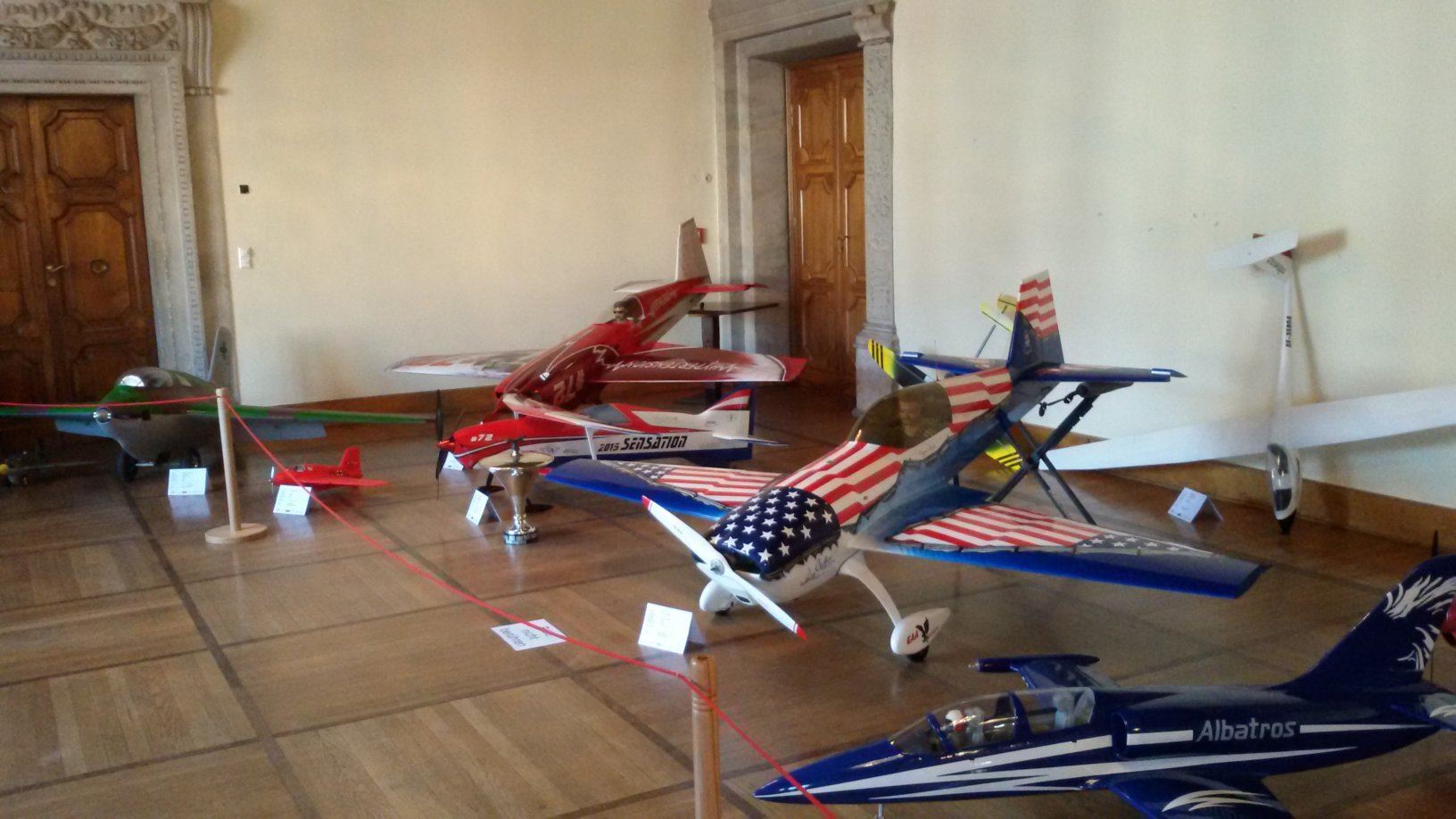 Mehrere Räume des Schlosses Porcia dienten in der Zeit vom 31.03. - 02.04.2017 als Hangar. Die Spittaler SGS-Modellbaugruppe von Obmann Rainer Linseder feiert mit einer imposanten Ausstellung ihr 40-jähriges Bestehen. Auf rund 250 Quadratmetern wurde im ersten Stock im Barraum, Ladinig- und Turmzimmer sowie im Ahnensaal ein beispielhaftes Spektrum an Modellflugzeugen präsentiert.