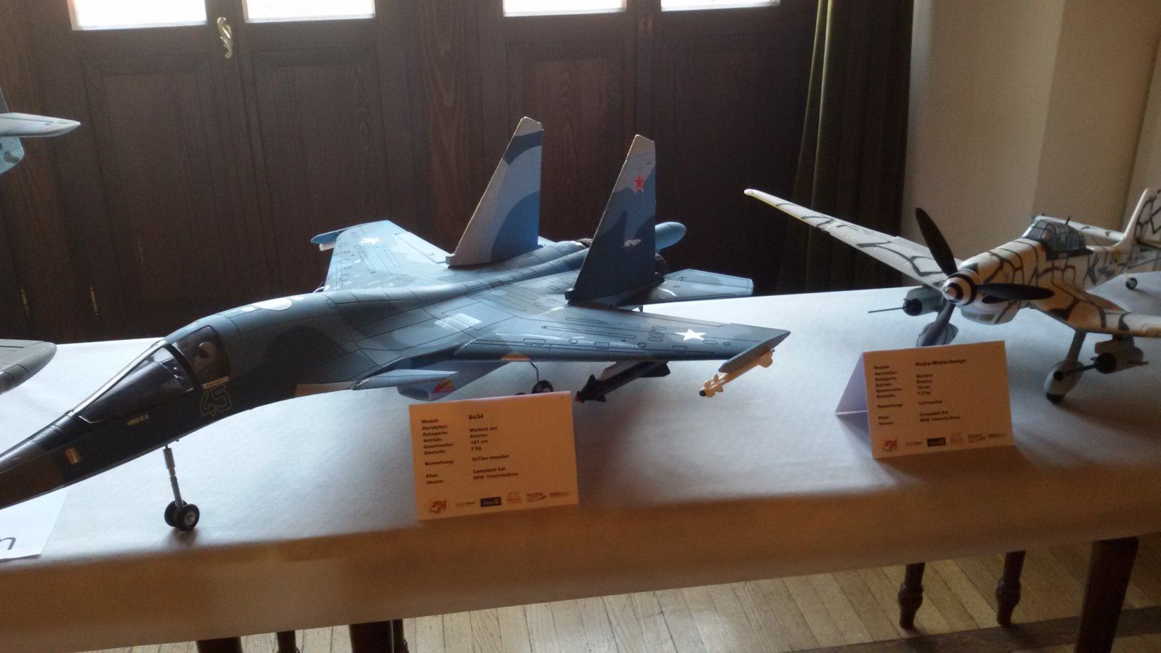 Zu sehen (und bewundern!) sind knapp 100 Großmodelle sowie noch einmal so viele kleinere. Sie alle zeugen von viel Fleiß und Liebe zum Detail. Ausgestellt werden Motor- und Düsenflugzeuge (Jets), Segler, Hubschrauber und mehrmotorige Multikopter, "fälschlicherweise" auch Drohnen genannt, wie Linseder der WOCHE berichtet. Es sind zivile und militärische Maschinen zu sehen, die entweder von einem gekauften Bausatz stammen oder selbst dem Original nachgebaut wurden. Dies gilt vor allem für die Oldtimer aus den 1930er und 40er Jahren.